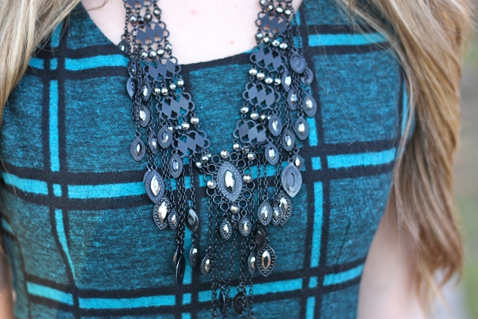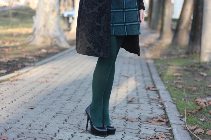 Hello guys! Yesterday, while I was tidying up some files on my Mac, I found these old photos taken just after Christmas. This outfit wanted to be a Christmas look for the holidays, but I think it’s good even for every day. The plaid dress, is heavy but comfortable, has a vaguely ’60s cut that I love so much. I completed the look with green ton sur ton tights and my YSL pumps combined with the black Desigual coat. What do you think?