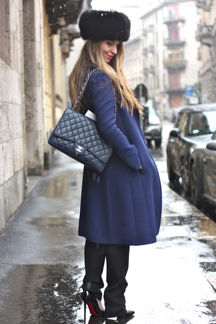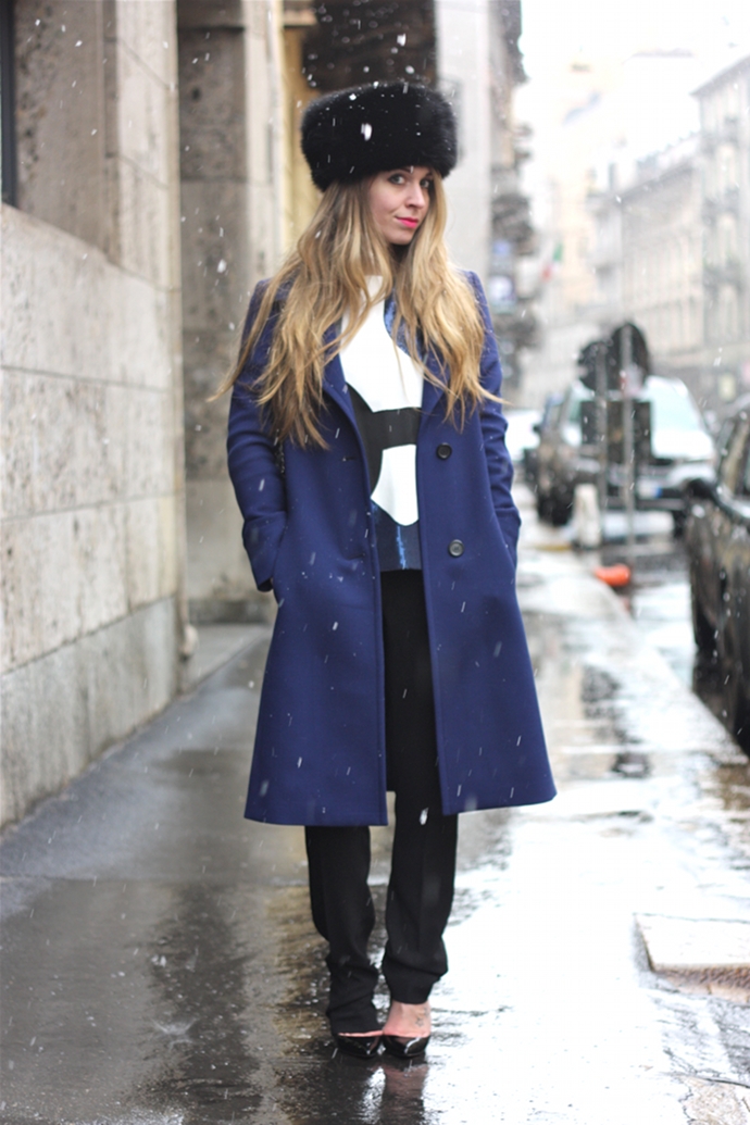 Vi lascio con l’outfit che ho utilizzato domenica e qualche foto di backstage. Il mio look non era prettamente “da neve” ma fortunatamente ho passato tutto il tempo all’interno del palazzo e mi sono trovata benissimo con il mio total look vagamente anni ’60. Amo il top di Iceberg abbinato al cappotto blu, decisamente uno dei miei outfit preferiti!