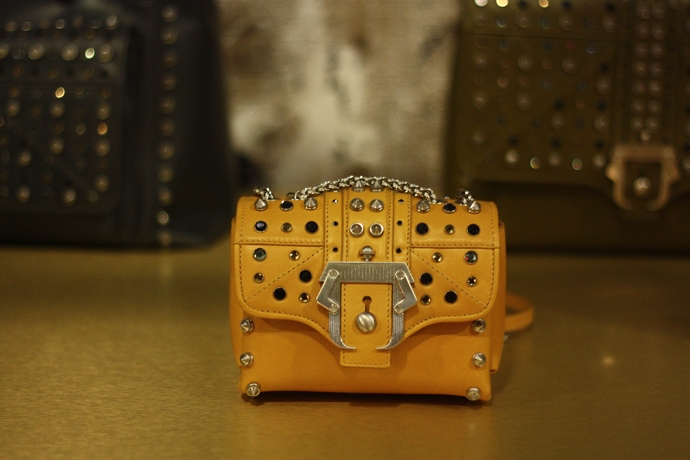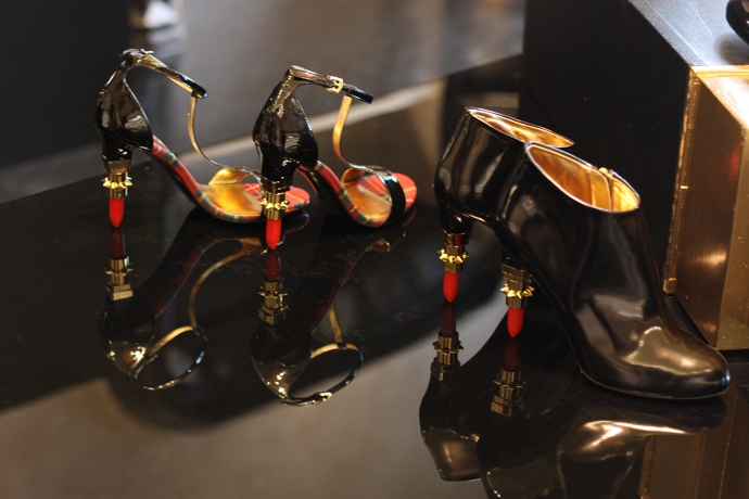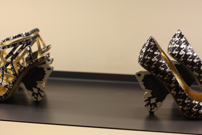 Alberto Guardiani: has presented a magnificent collection inspired by the swinging London. Very 60s in the choice of forms and colors, a common thread that continues with the collection scenes, that seem to jump out of the last episode of Mad Man and the tipical red telephone box. In addition to the iconic Lipstick heels (How cool are the studded ones?), comes a new baby in the Guardiani house, the butterfly heels.