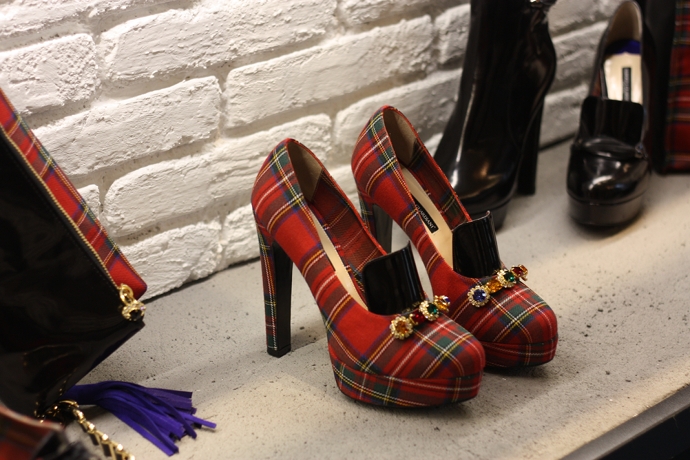 Alberto Guardiani: ha presentato una magnifica collezione ispirata allo swinging London. Molto anni ’60 nella scelta delle forme e dei colori, un fil rouge che prosegue anche nell’allestimento della collezione, scene che sembrano saltate fuori dall’ultima puntata di Mad Man e l’immancabile cabina telefonica rossa. Accanto alle ormai iconiche Lipstick heels (bellissime quelle borchiate), spunta una nuova nata in casa Guardiani, la scarpa con il tacco farfalla.