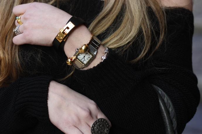 Bag: Balenciaga. Sneakers:Isabel Marant. Hat:Bershka. Ring:Hermes, Alexander McQueen, Pandora. Watch:Cartier. Sunglasses:Asos. Pants:brand. Sweater:Zara.