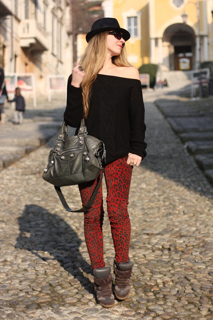 Hello guys! After this busy week full of work and event, I finally show you the outfit that I wore last Sunday (I know, with a little ‘delay). Fortunately, that day there was an exceptional climate, It seems almost spring. I decided to wear a large sweater, red leopard jeans, the comfortable Isabel Marant sneaker,paired withmy lovely Balenciaga :-). Comfortable look for a walk to Lake Orta, a lovely place right next to my house. What to say guys, there’s nothing that I relax more than the lake, I’m really lucky to live here near it. For now, I leave you guys, I wish you a wonderful weekend!