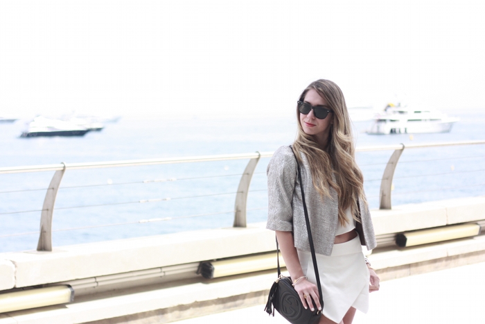 Buongiorno ragazzi! Eccoci qui con un nuovo outfit post! Come già vi avevo detto, due weekend fa sono stata a Montecarlo per il GP, ovviamente ci siamo presi del tempo anche per noi 🙂 Un rilassantissimo lunedì in riva al mare accarezzati da uno splendido sole. Non c’era decisamente occasione migliore per indossare il mio outfit total white, composto da questo magico crop-top (ma voi vi sareste mai aspettate che sarebbe ritornata di moda la pancia fuori?) e gli shorts-gonna di Zara, (che adoro!). Non potevo separarmi dalle mie espadrilles di Chanel e dalla disco bag di Gucci, decisamente due dei miei miglior acquisti di sempre! Sono molto soddisfatta di questo look, nonostante i crop-top non siano uno dei miei must, in questo caso, il taglio ampio, ingentilito dalle maniche a pipistrello, mi piace molto! Voi cosa ne dite? Pro o contro i crop-top?