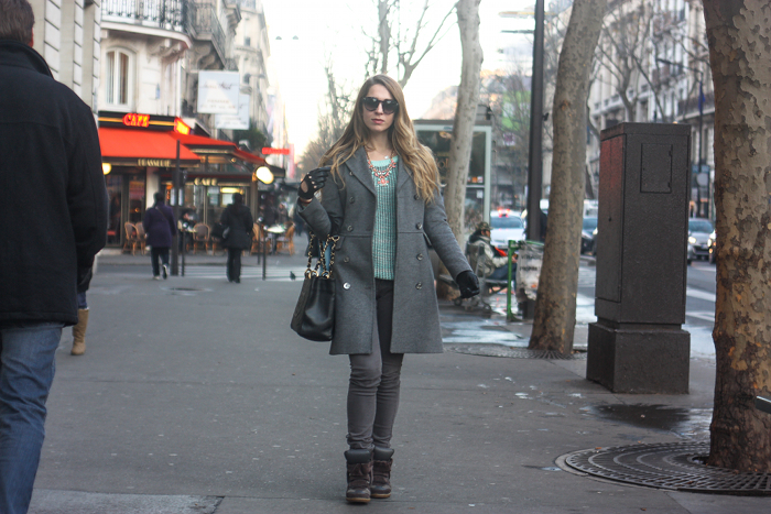 An outfit composed of the tones of gray and pastel colors. Accomplice the new necklace from Forever21 (just bought it 🙂 ) and my sweater bought on my last trip to Cannes. I seem to still be there, in one of my places of heart.
