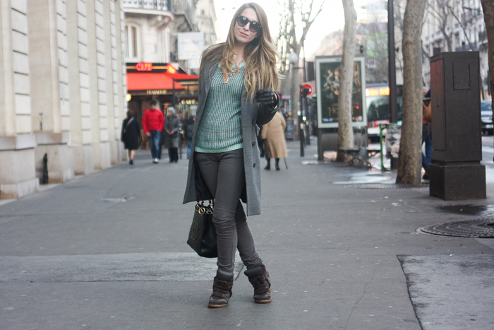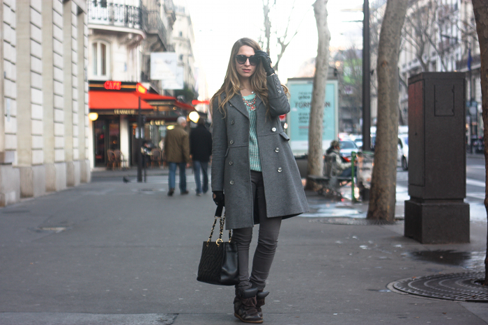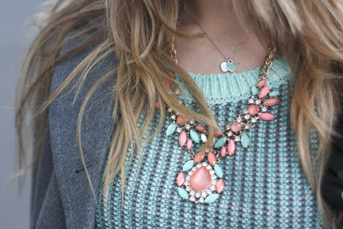 Un outfit composto dai toni dei grigio e da colori pastello. Complice la collana di Forever21 (appena comprata 🙂 ) e il mio maglione comprato nel mio ultimo viaggio a Cannes. Mi sembra di essere ancora li, in uno dei miei luoghi del cuore.