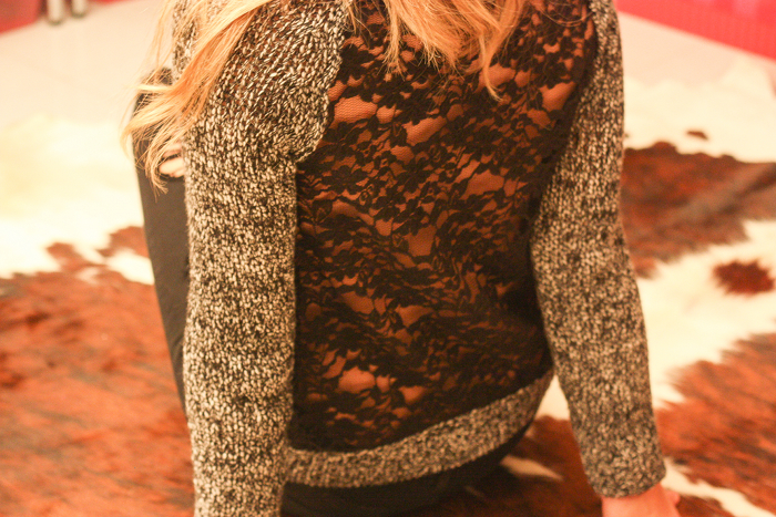 Quel cardigan tanto caldo, ma con il retro in pizzo, un po’ sexy, un po’ maxi.