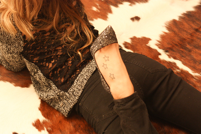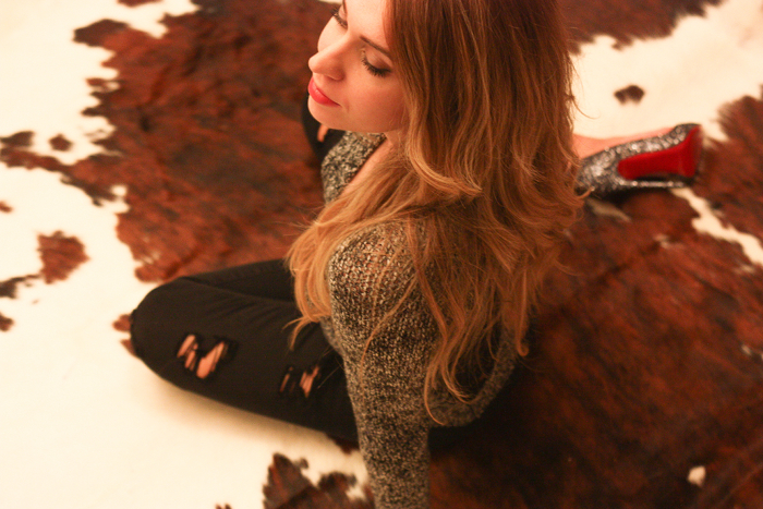 Uno di quei giorni nei quali ti prepari per uscire e poi il freddo, la stanchezza e il tepore della tua stanza, ti fanno rimanere a casa per una cenetta tranquilla… Ma chi l’ha detto che in casa non si può indossare la scarpa perfetta dal tacco dodici, per di più glitterata e con la suola rossa.