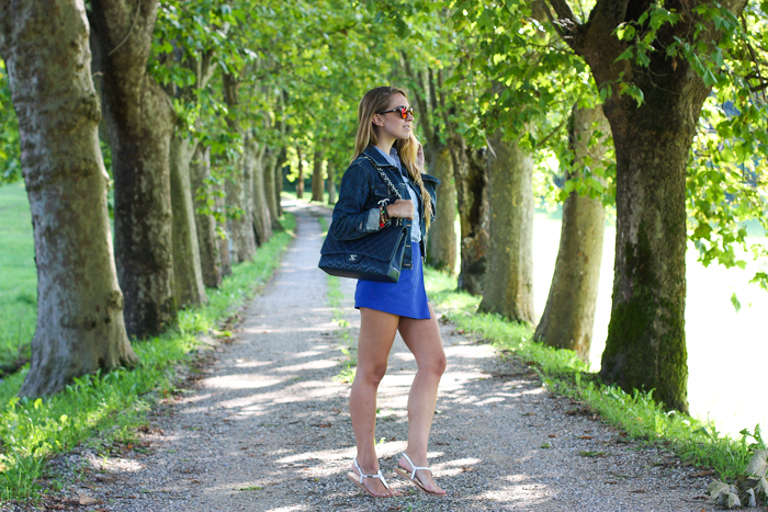 A classic, a shirt, casual and revisited for summer (with short sleeves), like this from Otto Asole found on TieApart. Combined with the Zara shorts, denim jacket. A material mix that I particularly like and a game on the nuances that seems trivial but it is not. A perfect look for a ride to the lake, on a Sunday among many. Accessories cult: Spektre sunglasses and Chanel maxi bag. I like it, and you?
