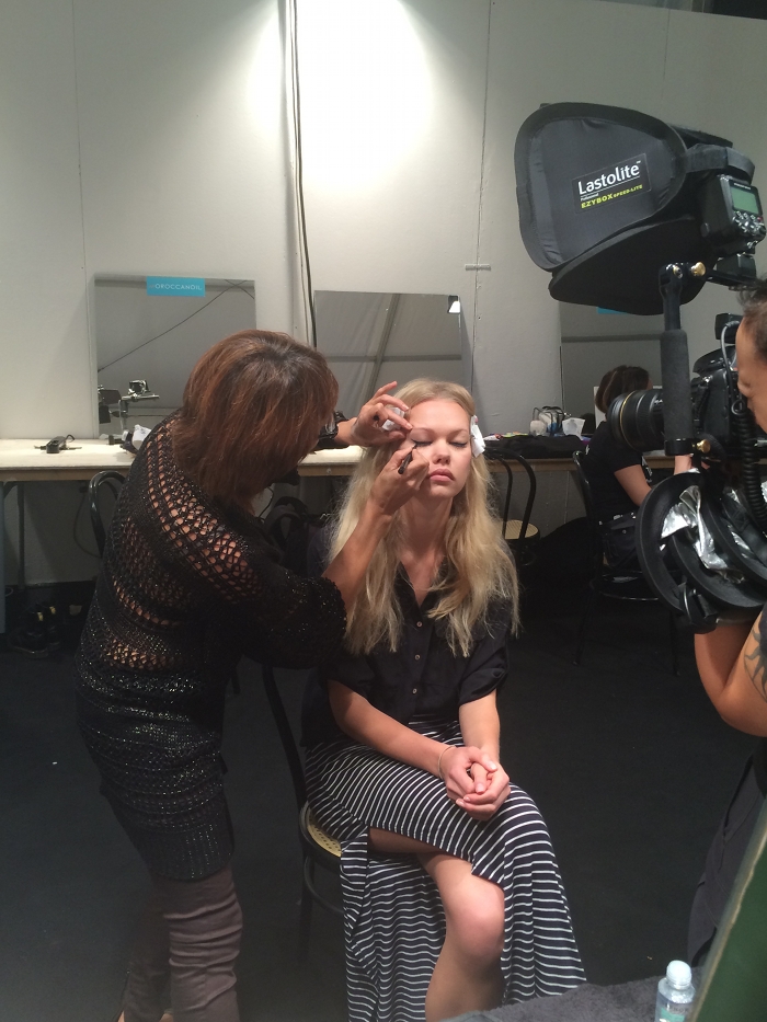 Da John Richmond troviamo Coppola, il trend di riferimento è il naturale che abbiamo già visto e che sarà sicuramente uno dei main trend per il 2015. I capelli sono leggermente mossi e gonfi grazie a Construction spay, con un leggero effetto mat. Le lunghezze sono mosse alla radice per un look chic e basic con Spray a Porter di Kérastase per il finish. Ci piace!
