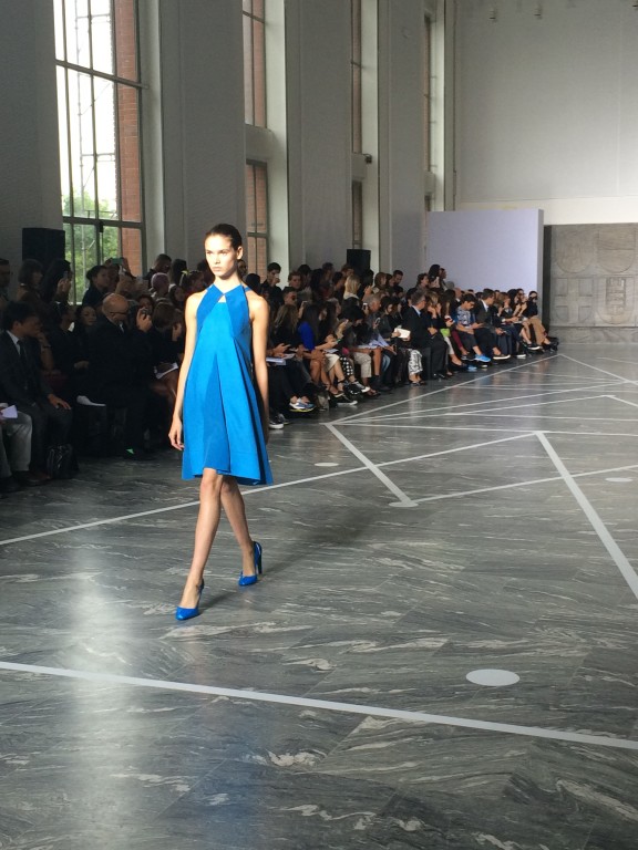 Partiamo con la sfilata di Grinko, dove le trecce sono le vere protagoniste. Un acconciatura elegante, strutturata. I parrucchieri L’Oréal Professionnel di riferimento sono quelli di Compagnia della Bellezza, per la parte scultorea sulla fronte utilizzano Gel Fix e lacca Elnett per definire il tutto. Che dire? W le trecce, ne vedremo moltissime nei look del 2015.