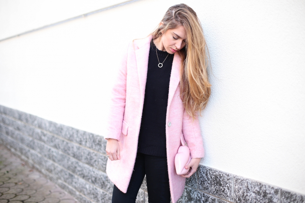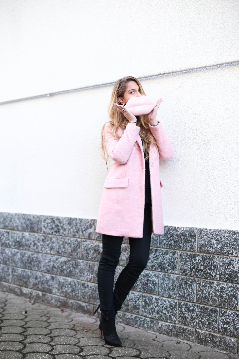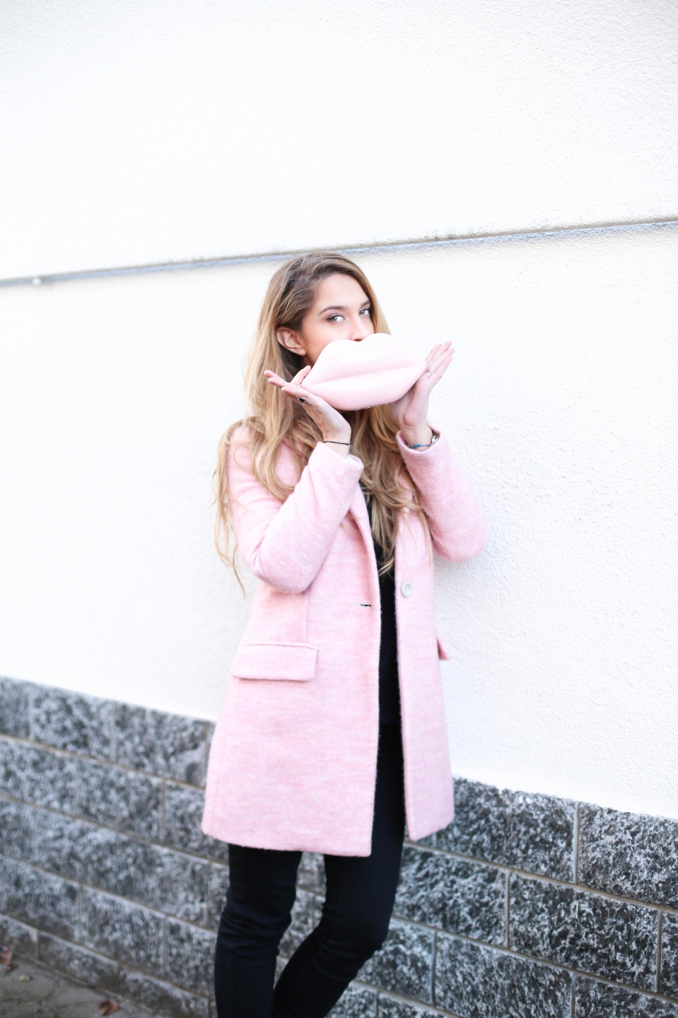 Pronta per un giretto in centro alla ricerca dei regali di Natale con un look total black spezzato solo dal cappotto rosa di Ottod’Ame e la lips clutch di Lulu Guinness che adoro. Auguro una dolce giornata, con un pizzico di rosa a voi! Un bacio!
