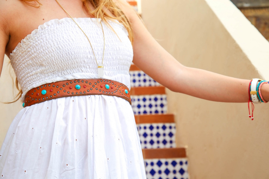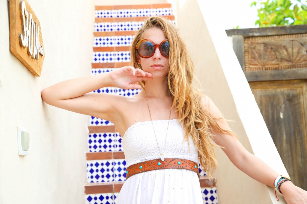 My look should be comfortable and versatile, just like this. The focus is definitely Fausto Colato leather belt with studs, turquoise and stones that goes well with the mood of the island. To stay on the subject I wore the Michael Kors stone necklace, a cotton and lace dress and the inevitable straw bag.