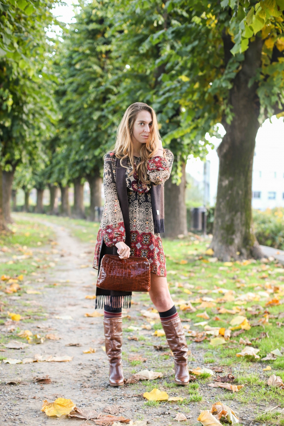 Autunno, un vestito stampato, i miei stivali di pelle e calzettoni a righe rubati dall’armadio del mio fidanzato. Un look che amo particolarmente, easy e young. Con me, il mio inseparabile HuaweiP8, per scattare delle selfie da urlo! Buon lunedì ragazzi!