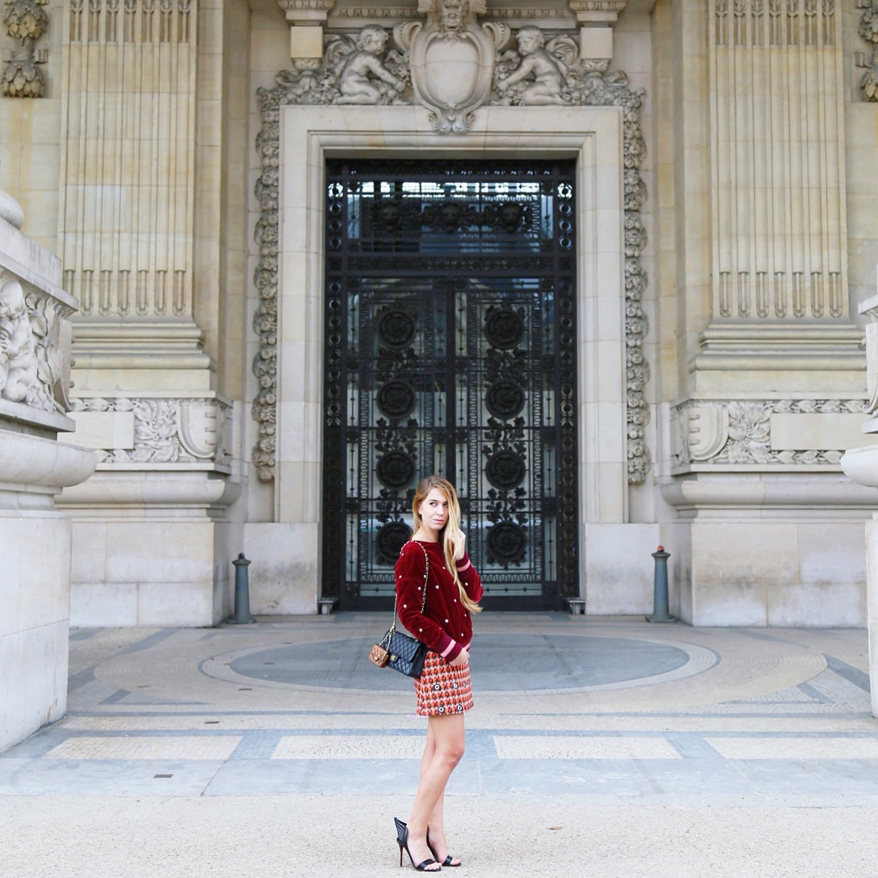 3rd evening look from Paris: Shoes: Christian Louboutin. Velvet dress: Boohoo.