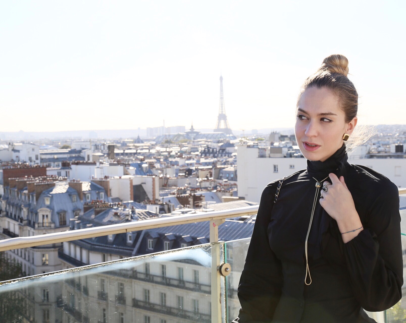 1st Look from Paris – Finge jacket: Drome. Bag: Giancarlo Petriglia.